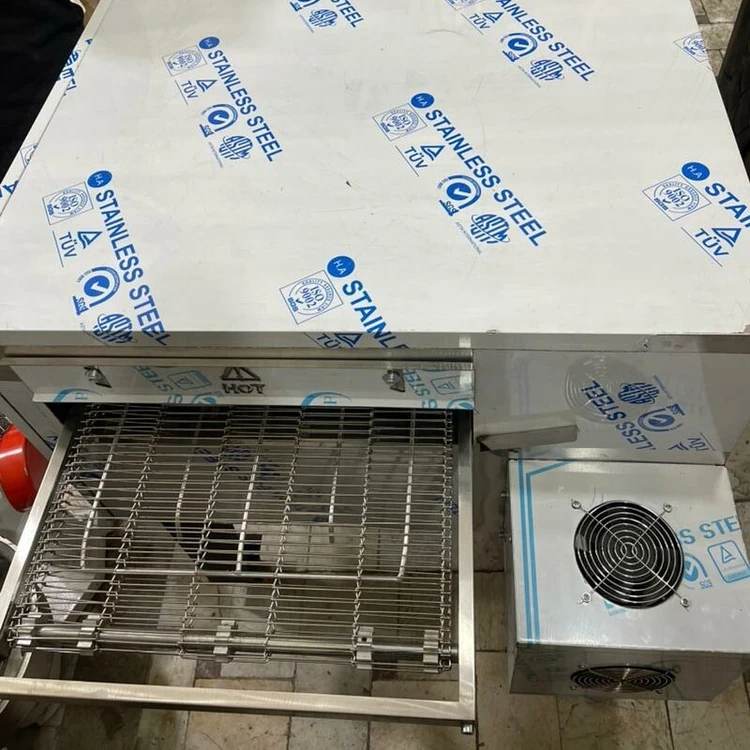 فر ریلی پیتزا دهنه ۵۰ موتور بغل دارای ترموستات تمام استیل چهار چرخ استپ دار